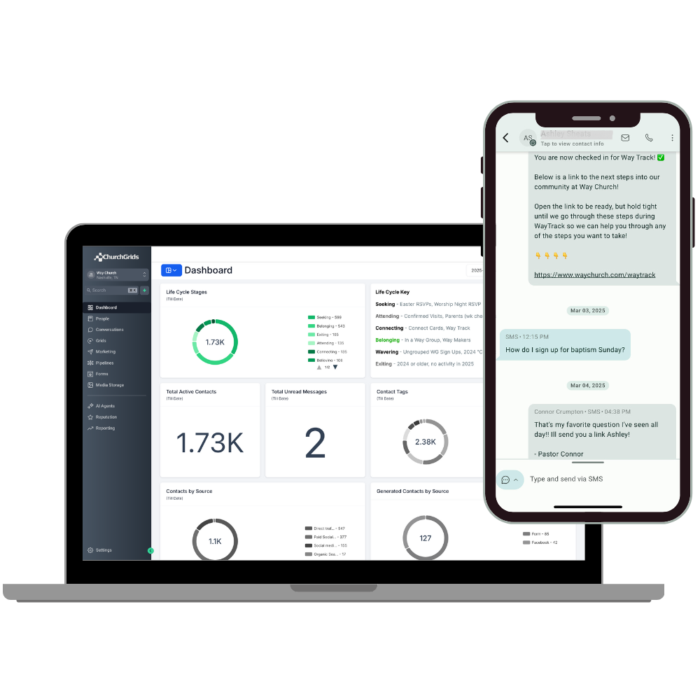 ChurchGrids is far more than just a platform for texts and emails. By unifying your people lists and messaging within our intelligent automation system—The Grid—we change how you connect with your community. Our Grids handle the repetitive background tasks automatically, while tracking engagement and updating records in ways other systems simply can't.